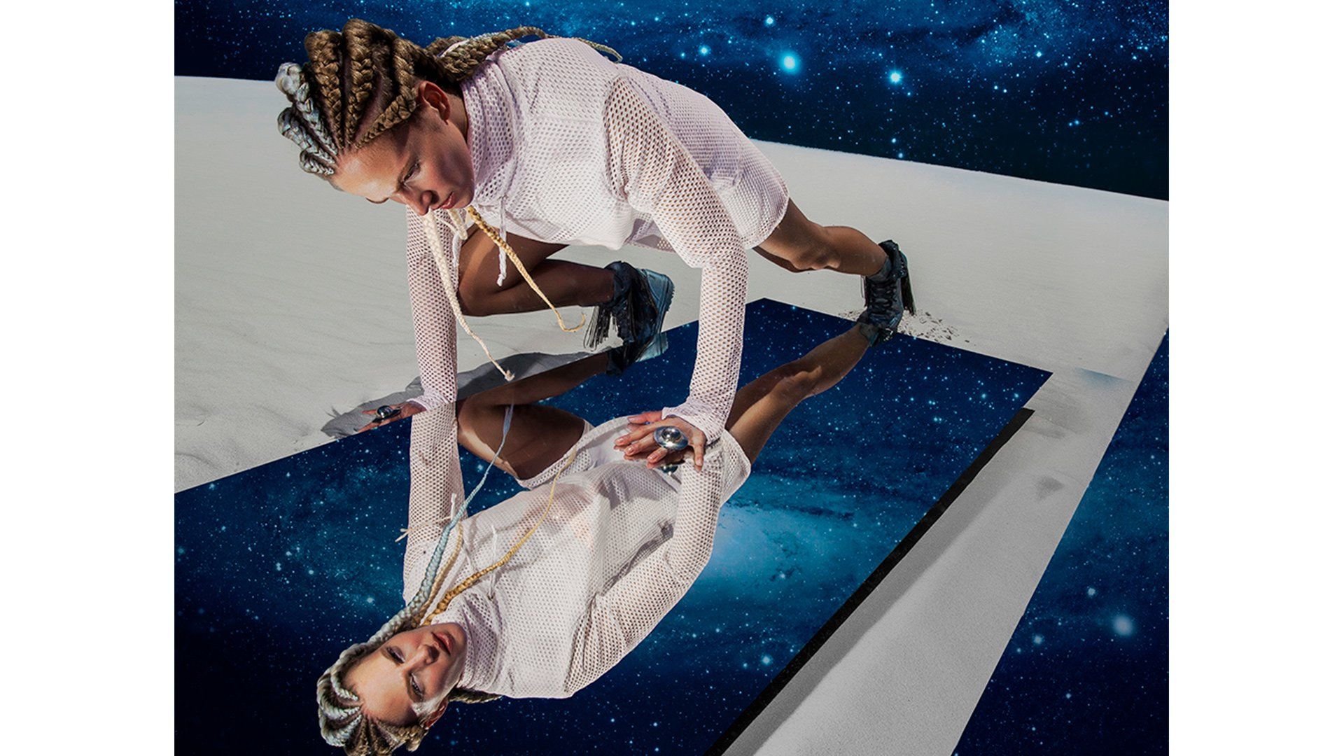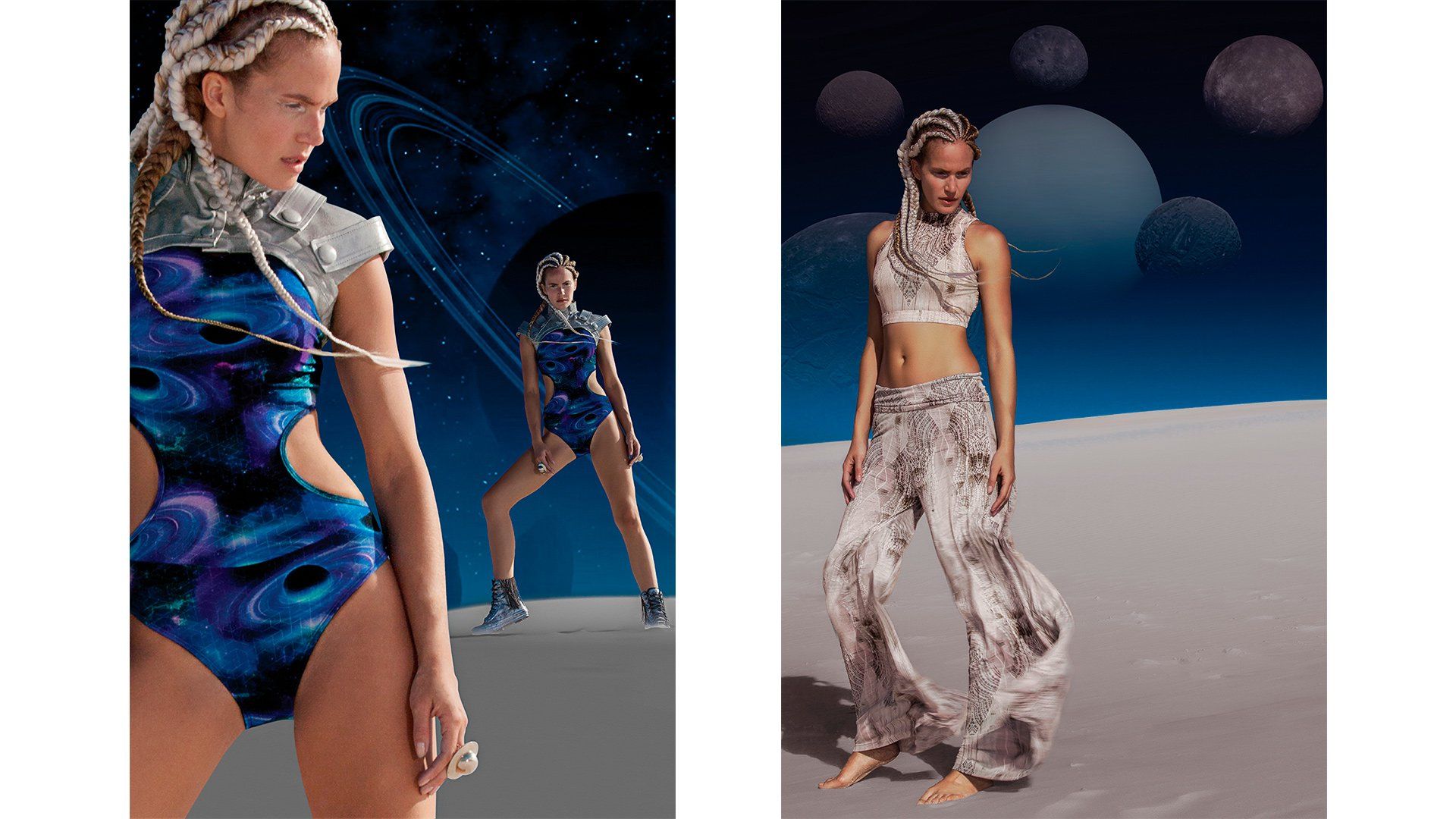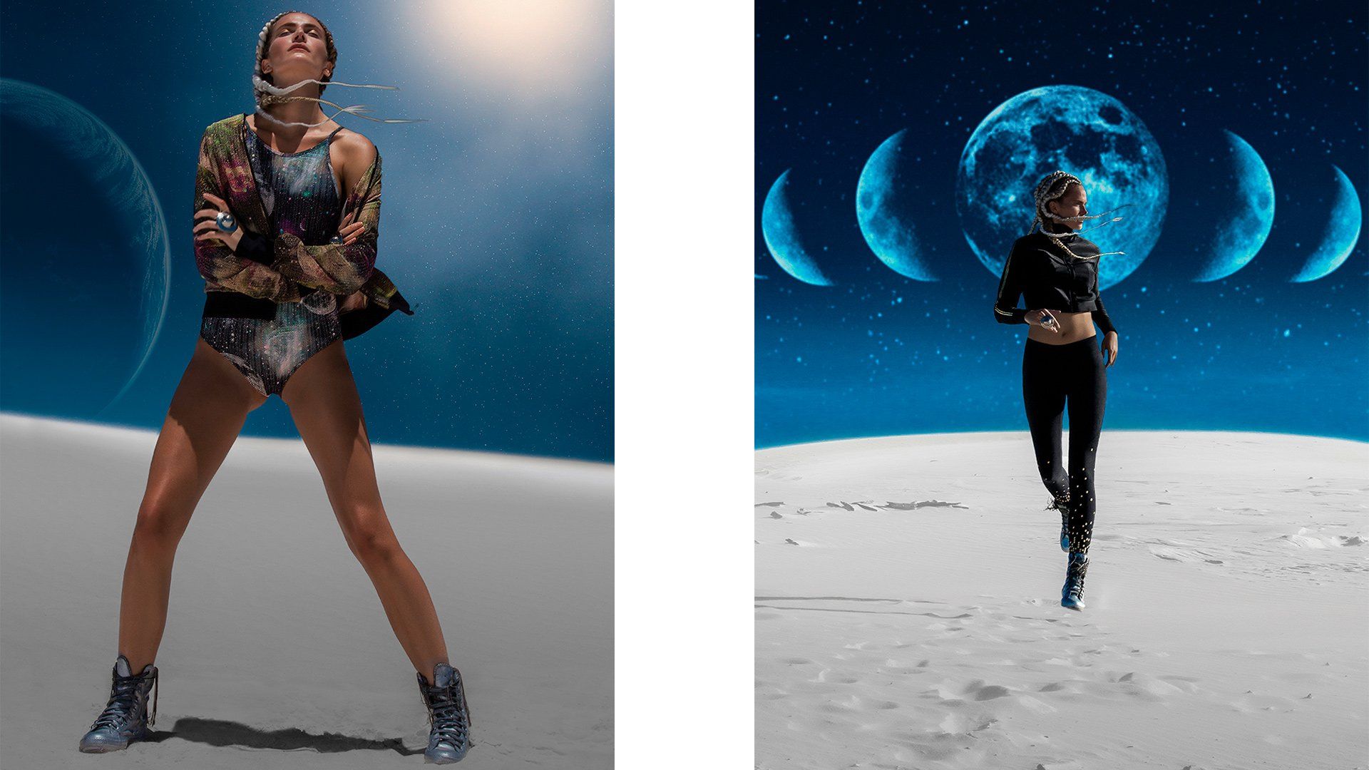 Elementos 3D buscaram demonstrar os movimentos dos astros, as dunas simbolizaram o solo dos planetas e a união entre maquiagem e cabelo recriaram a temática espacial. A combinação entre a produção e as peças da coleção possibilitaram uma verdadeira viagem pelo espaço.