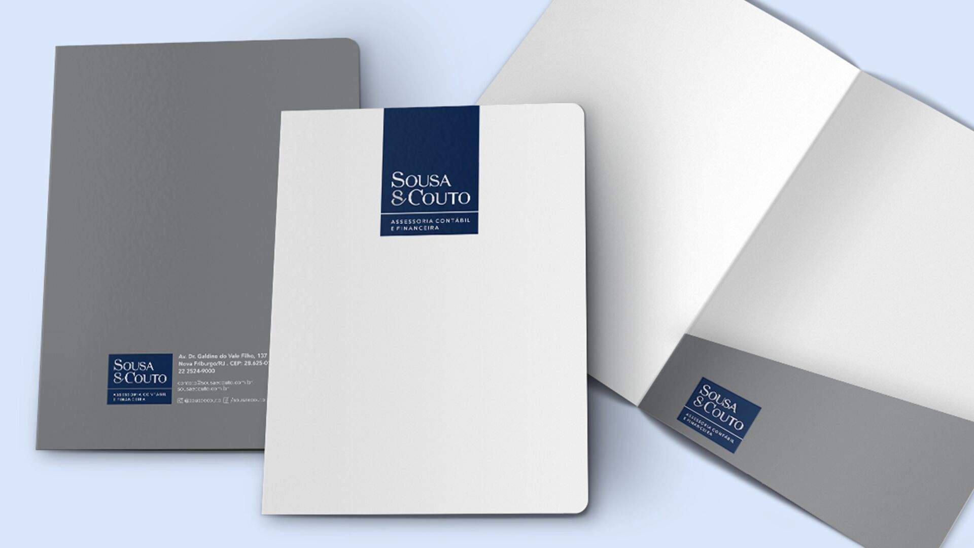 Além do novo material de papelaria, desenvolvemos um folder institucional apresentando os serviços da Sousa e Couto. Criamos o roteiro e produzimos um VT para as redes sociais e para o novo site, também todinho elaborado pela nossa equipe.